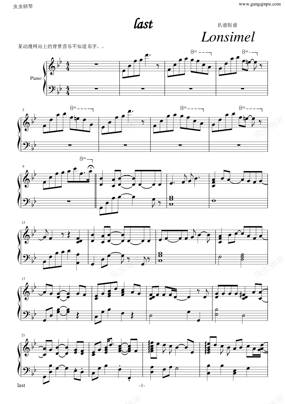 不知道这个曲子的名字 扒自/ 这个网站的背景音乐..根据原码里的文件名字是Last 如果有谁知道这首曲子的名字和作品的话 请告诉我 希望大家会喜欢