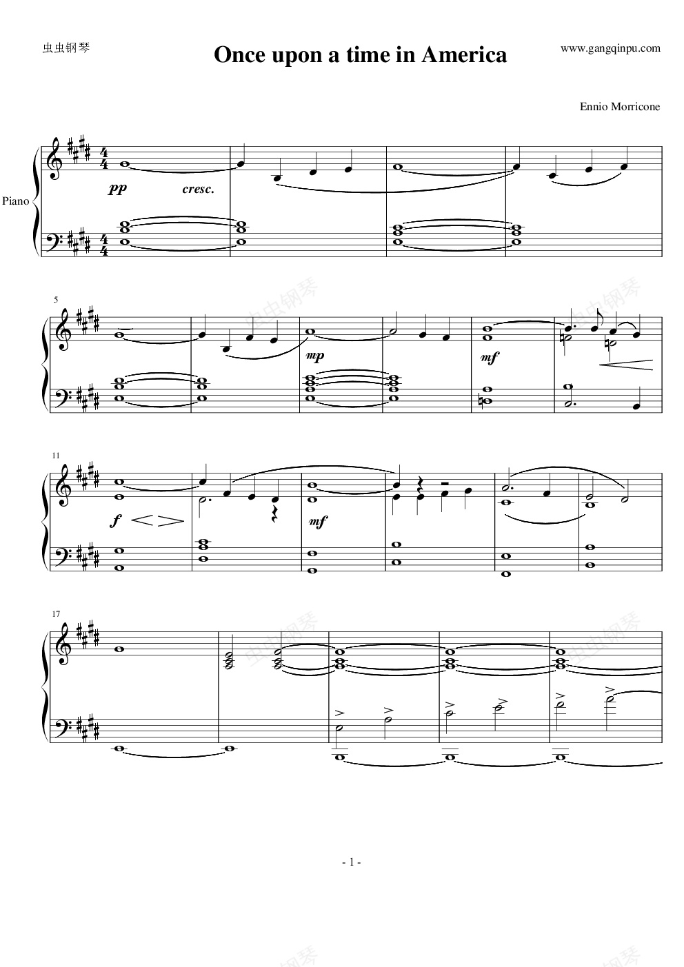 钢琴谱:美国往事主题音乐 弦乐版