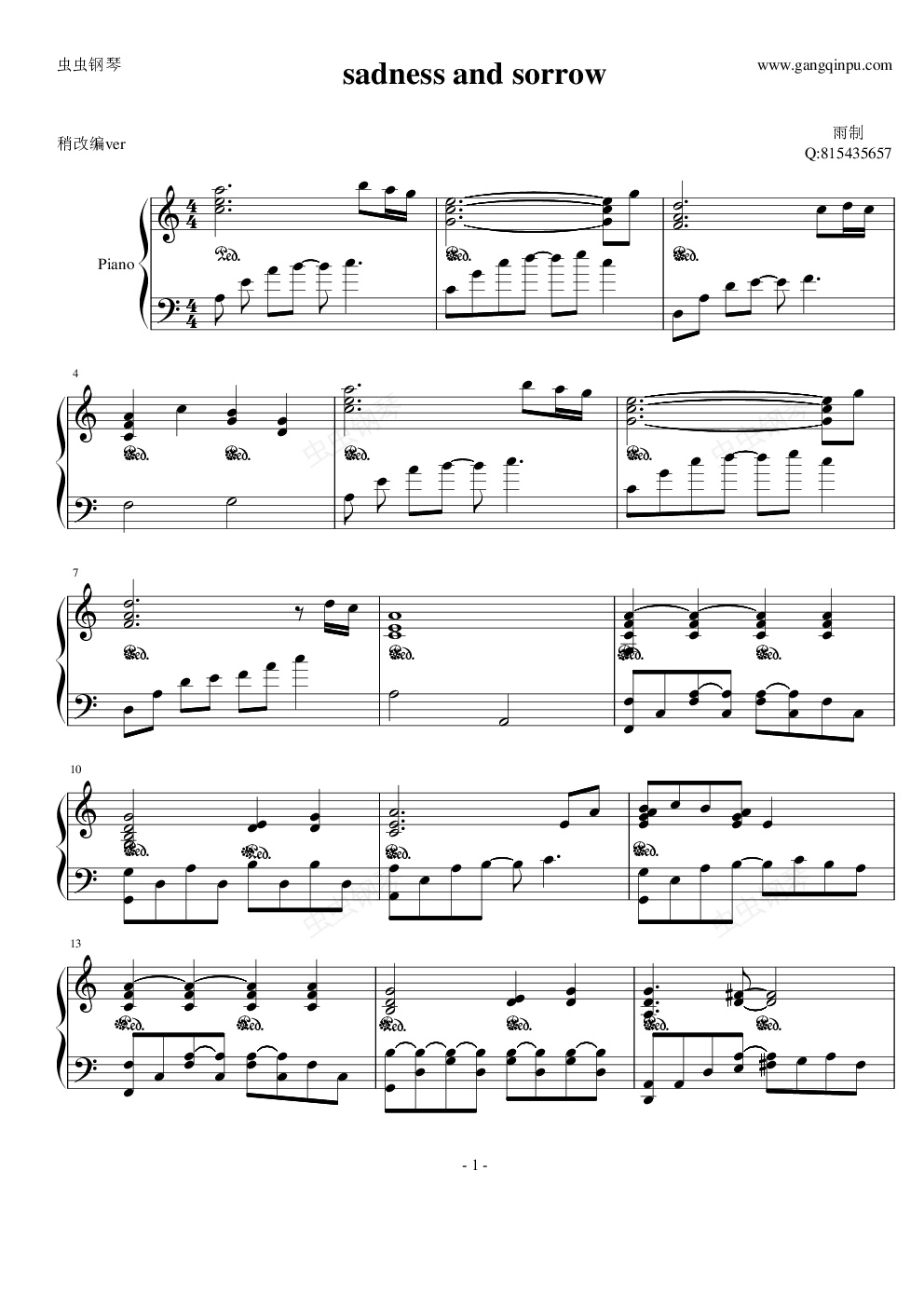 钢琴谱:sadness and sorrow - 火影 ArrangeVer.