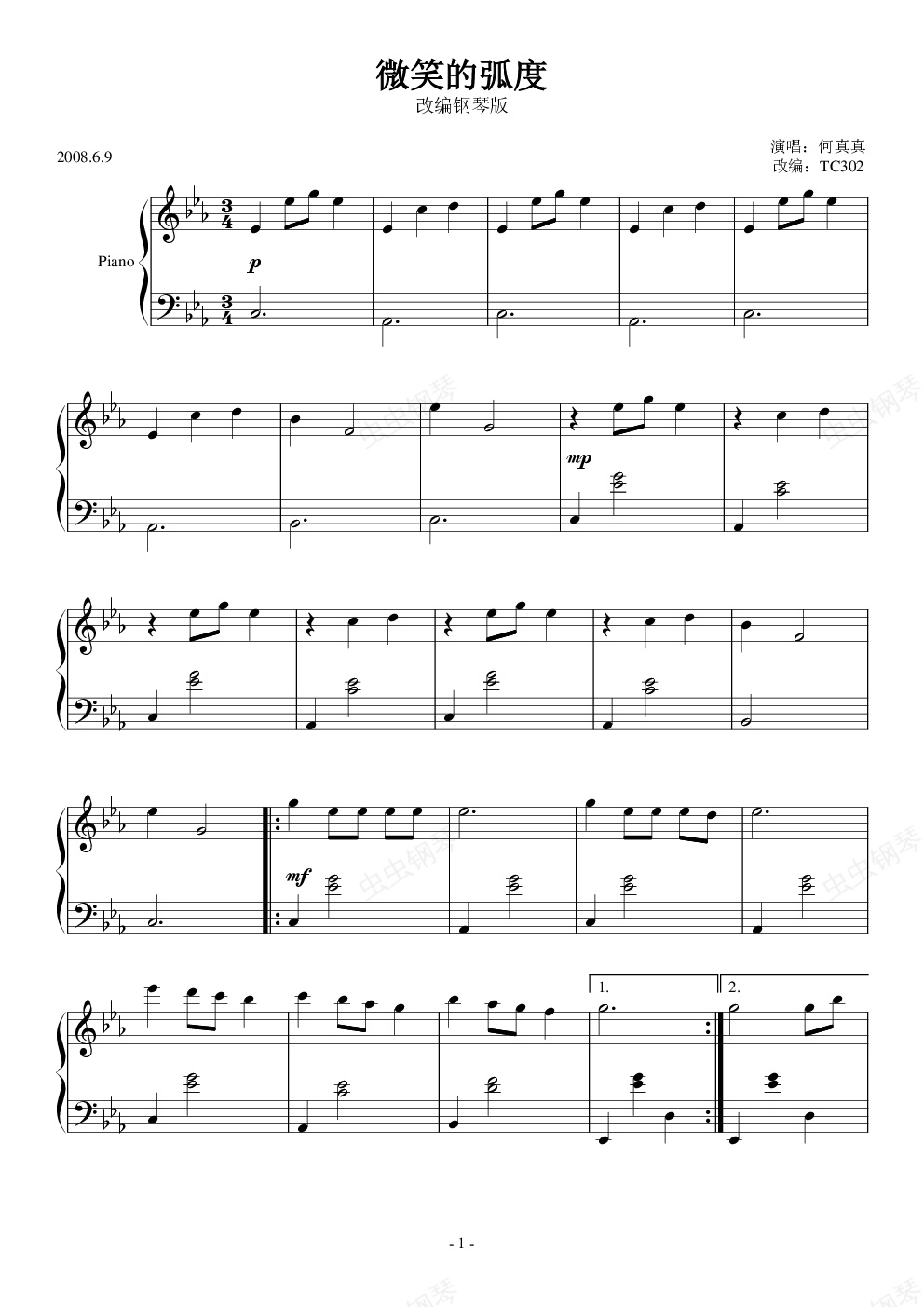 钢琴谱:微笑的弧度