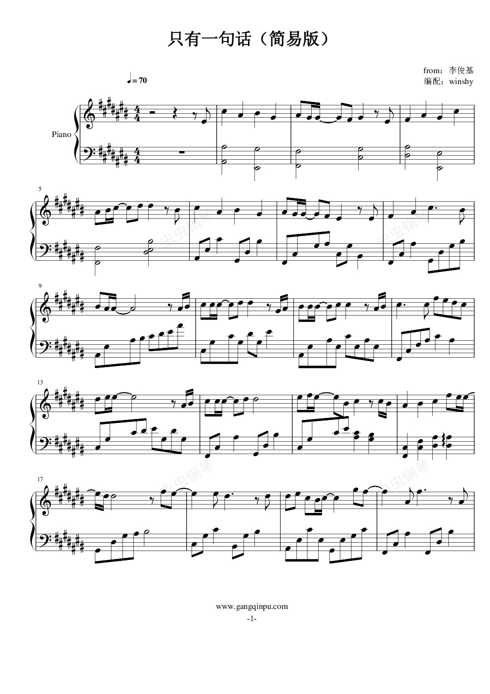 钢琴谱:只有一句话