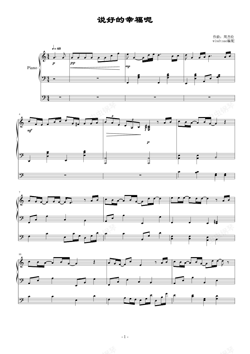 钢琴谱:说好的幸福呢(弹唱)