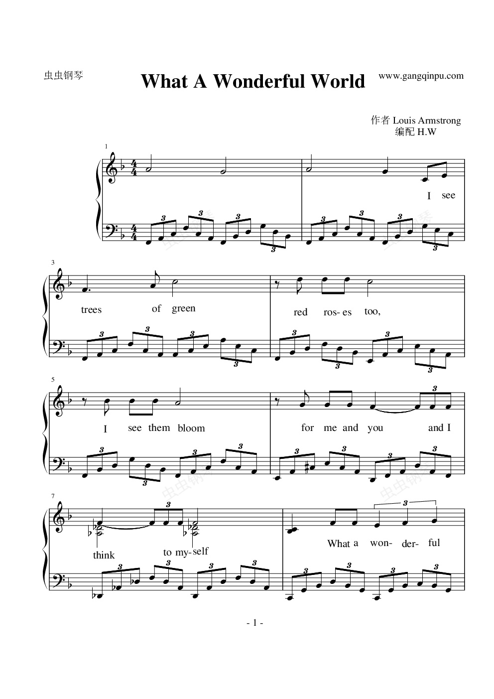 钢琴谱:经典布鲁斯—What A Wonderful World
