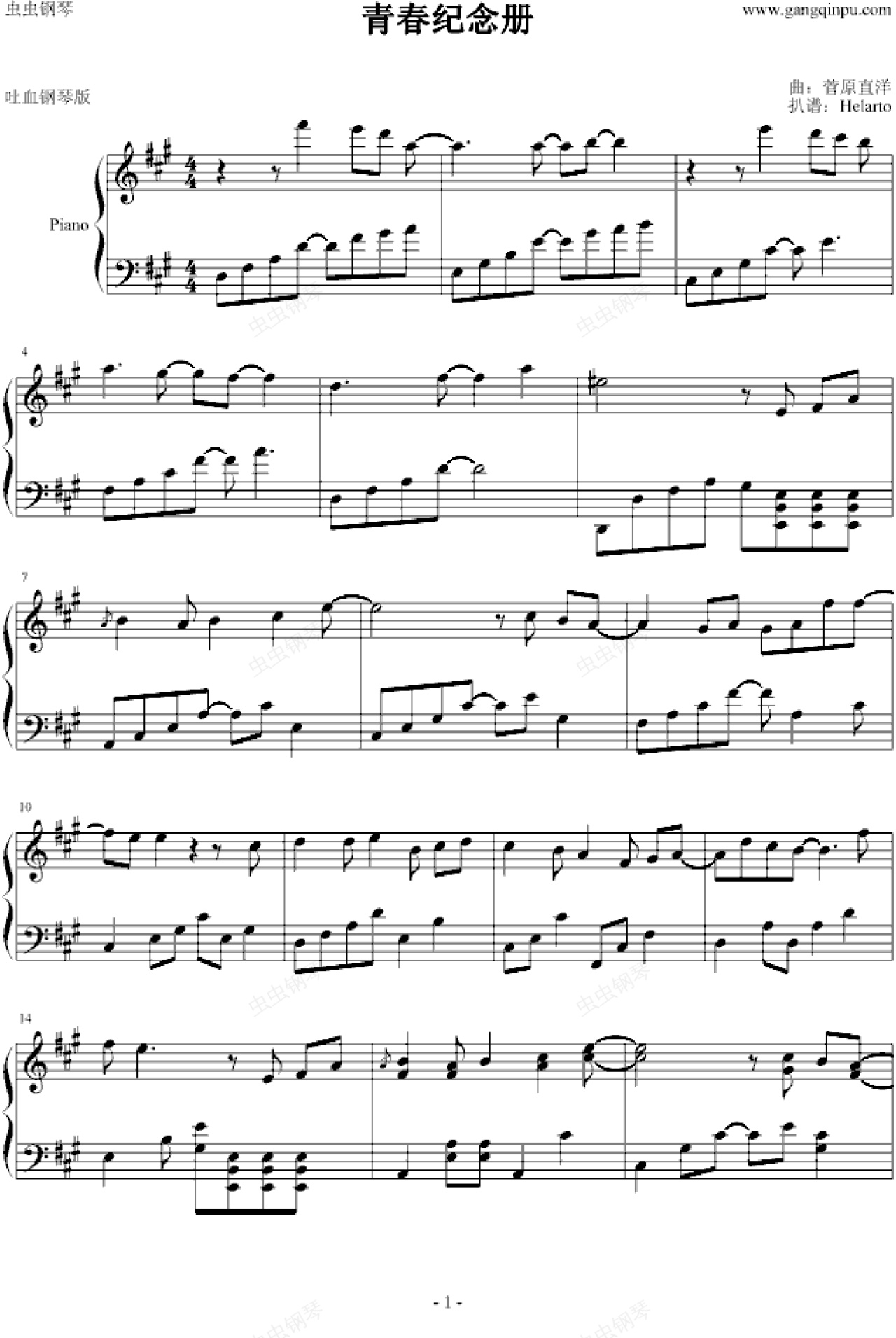 今天,最后一门考试结束了,我大学毕业了~!听到了《青春纪念册》产生了共鸣,想弹一下,发现,网上没有钢琴谱。那就自己做一个吧。