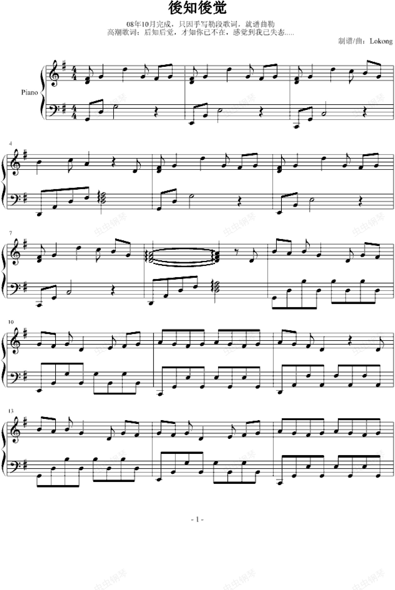 钢琴谱:後知後觉