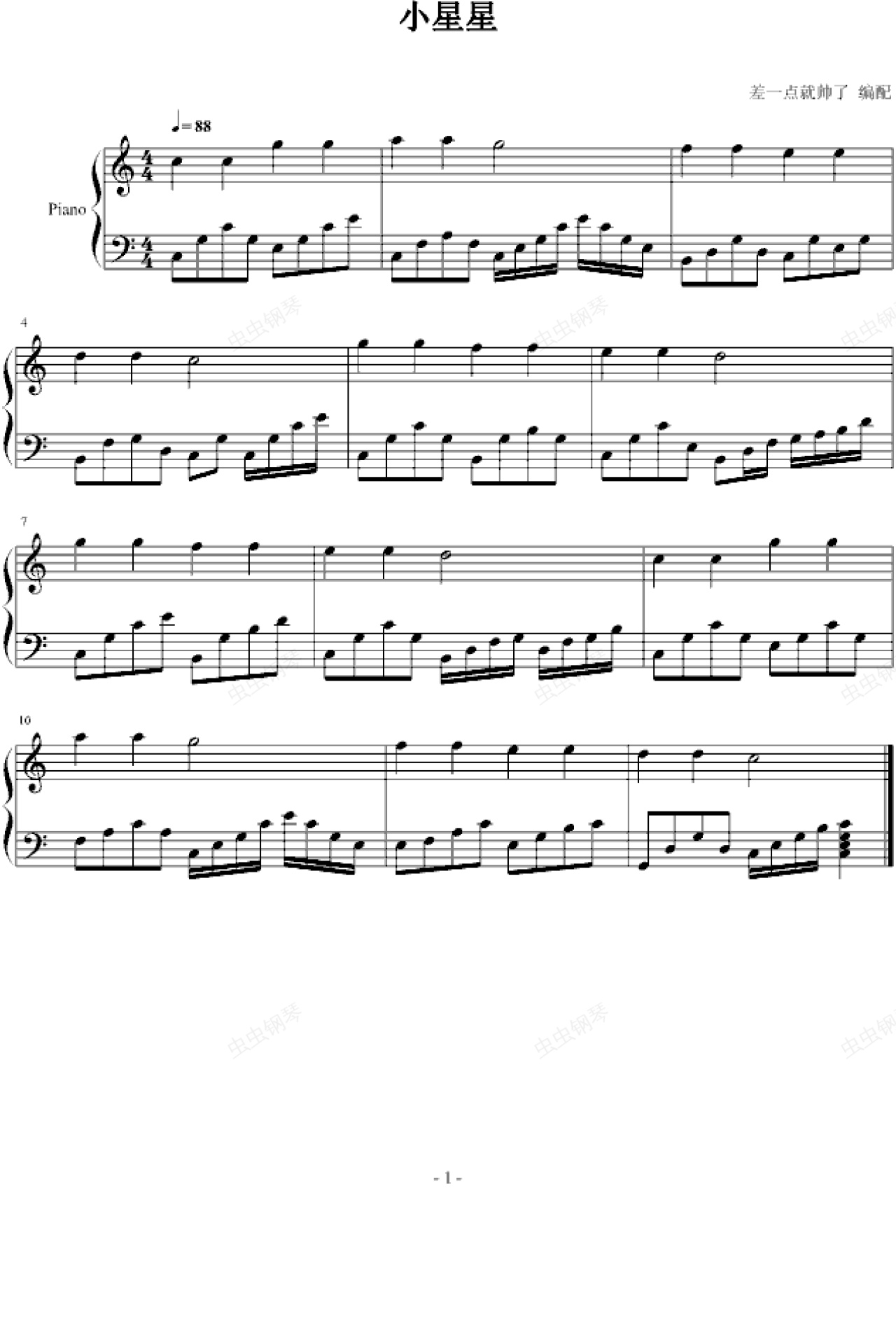 钢琴谱:小星星-差一点就帅了