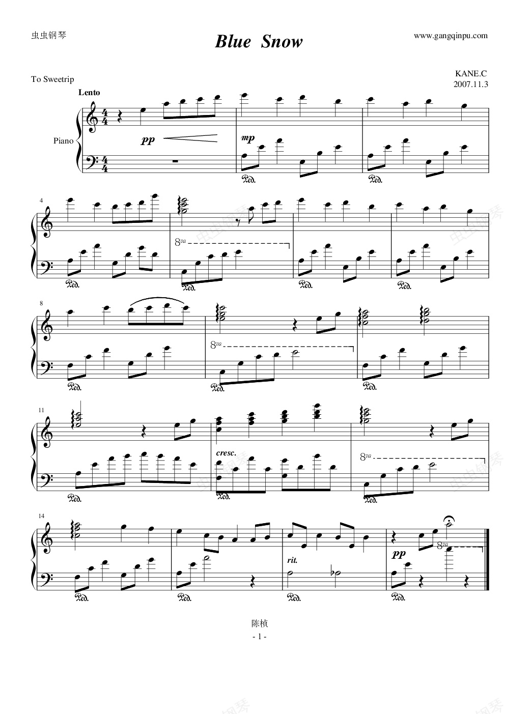 钢琴谱:Blue Snow