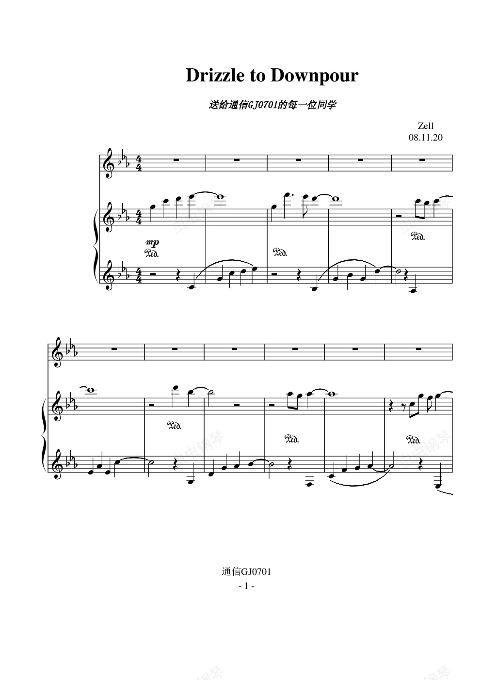 钢琴谱:Drizzle To Downpour