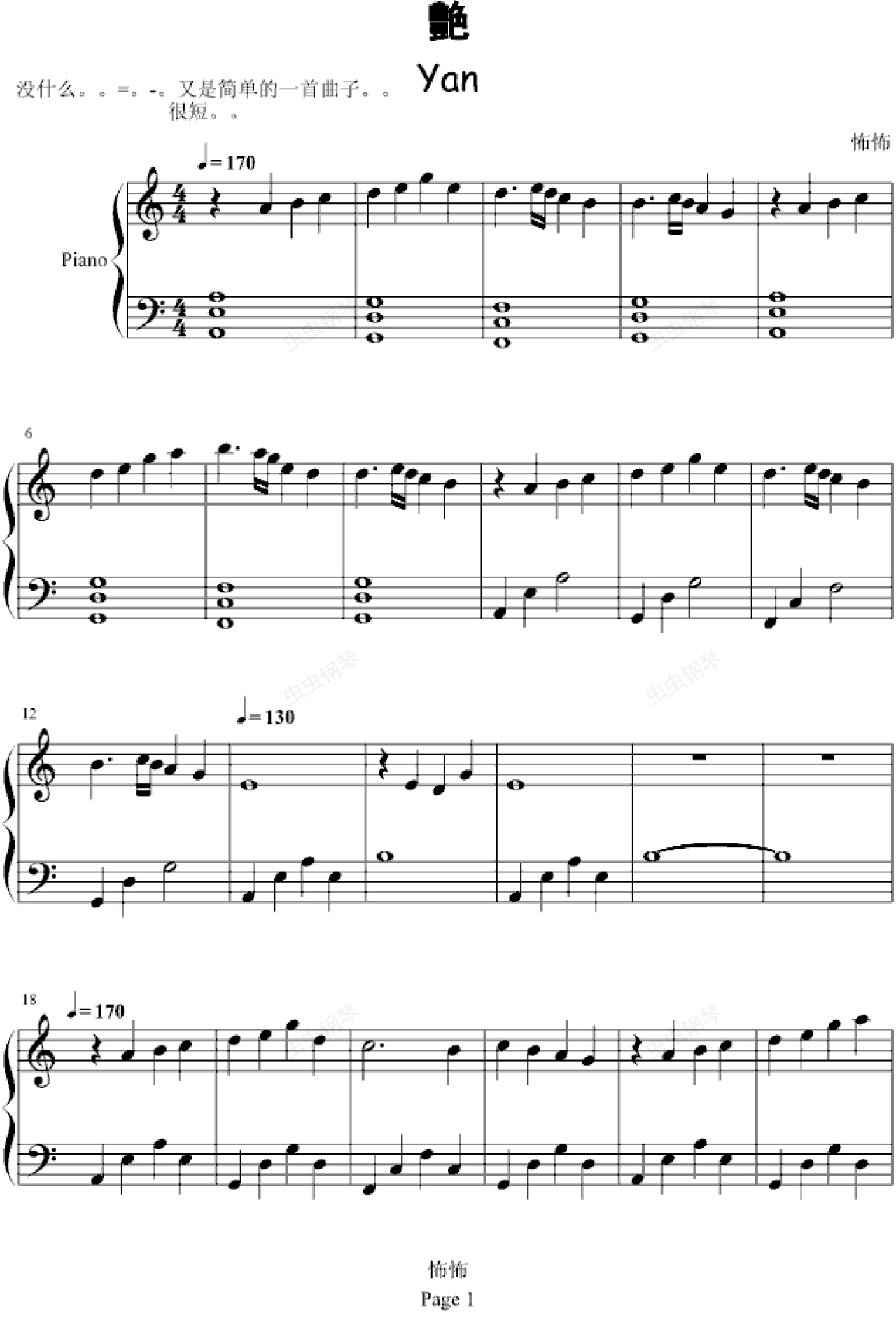 钢琴谱:艳