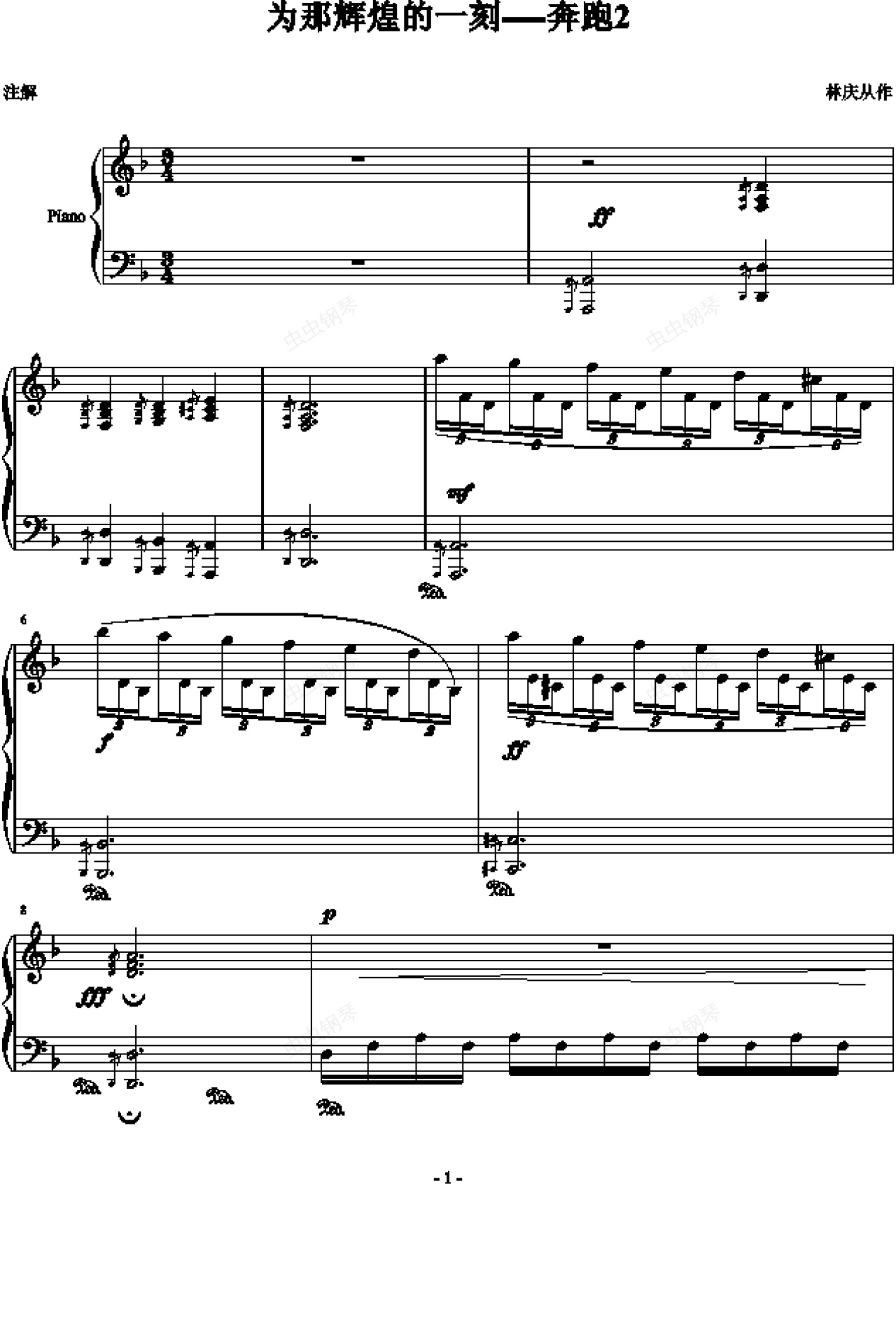 钢琴谱:奔跑第二首《为那辉煌的一刻》