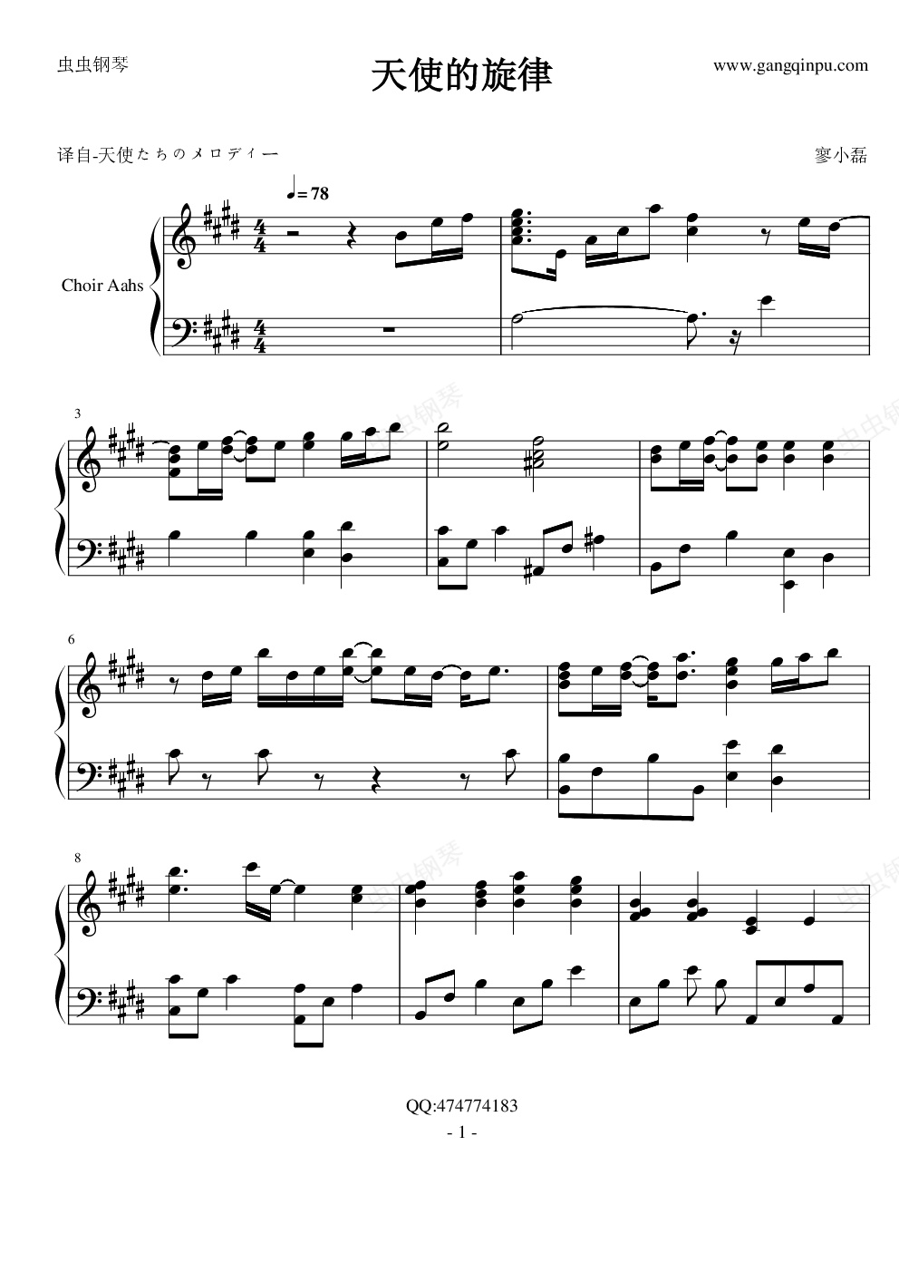 钢琴谱:天使的旋律(天使たちのメロディー )