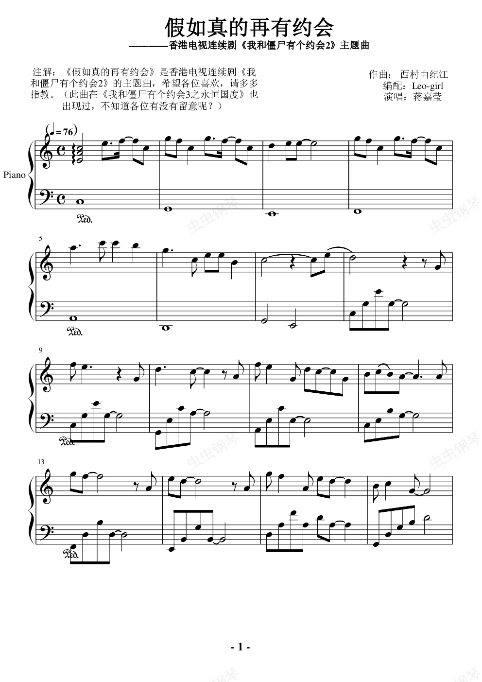 钢琴谱:假如真的再有个约会