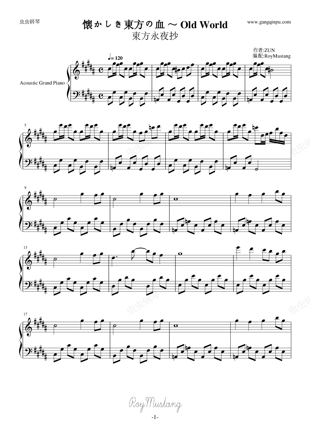 钢琴谱:[东方永夜抄]懐かしき東方の血~Old World