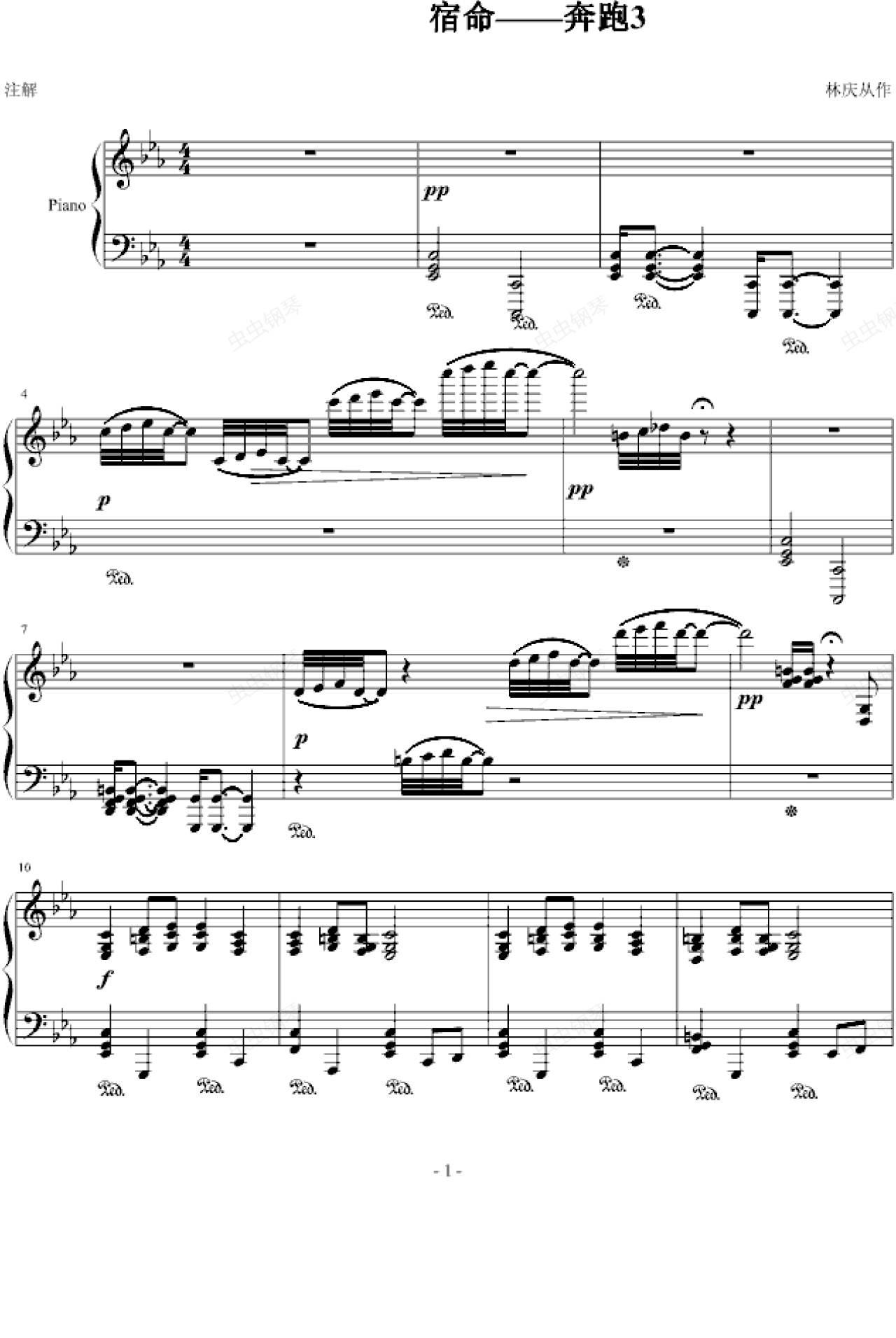 钢琴谱:奔跑三《宿命》