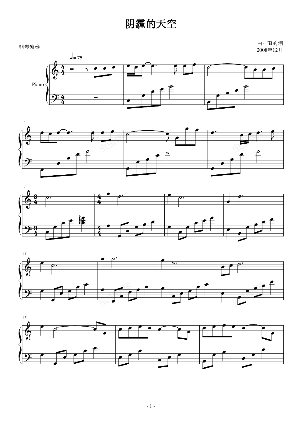 钢琴谱:阴霾的天空