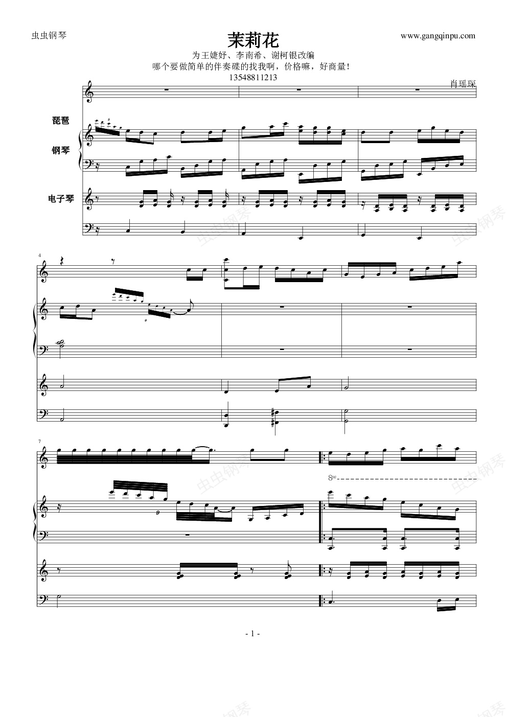 钢琴谱:茉莉花(琵琶)键盘伴奏