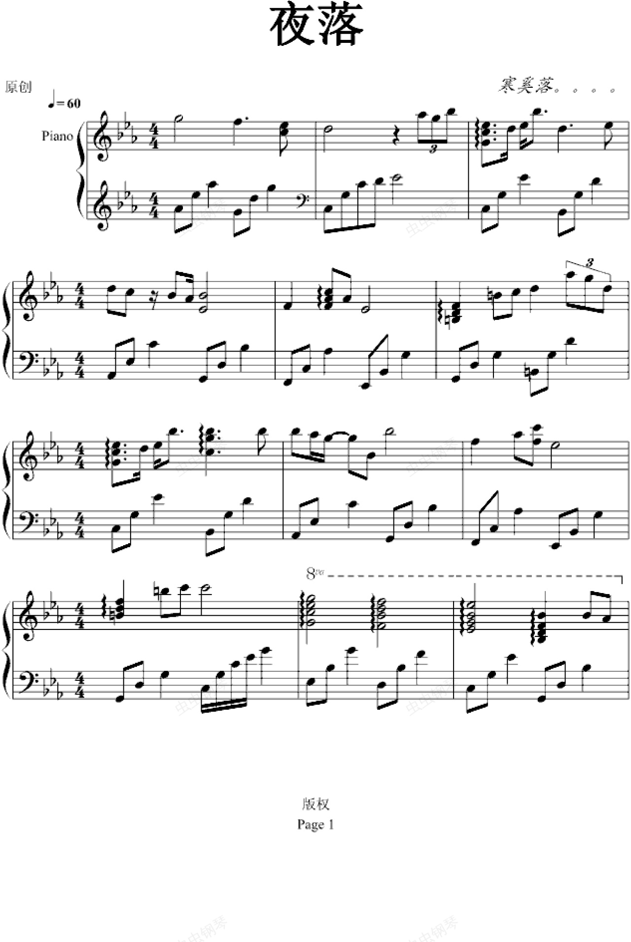 钢琴谱:夜落