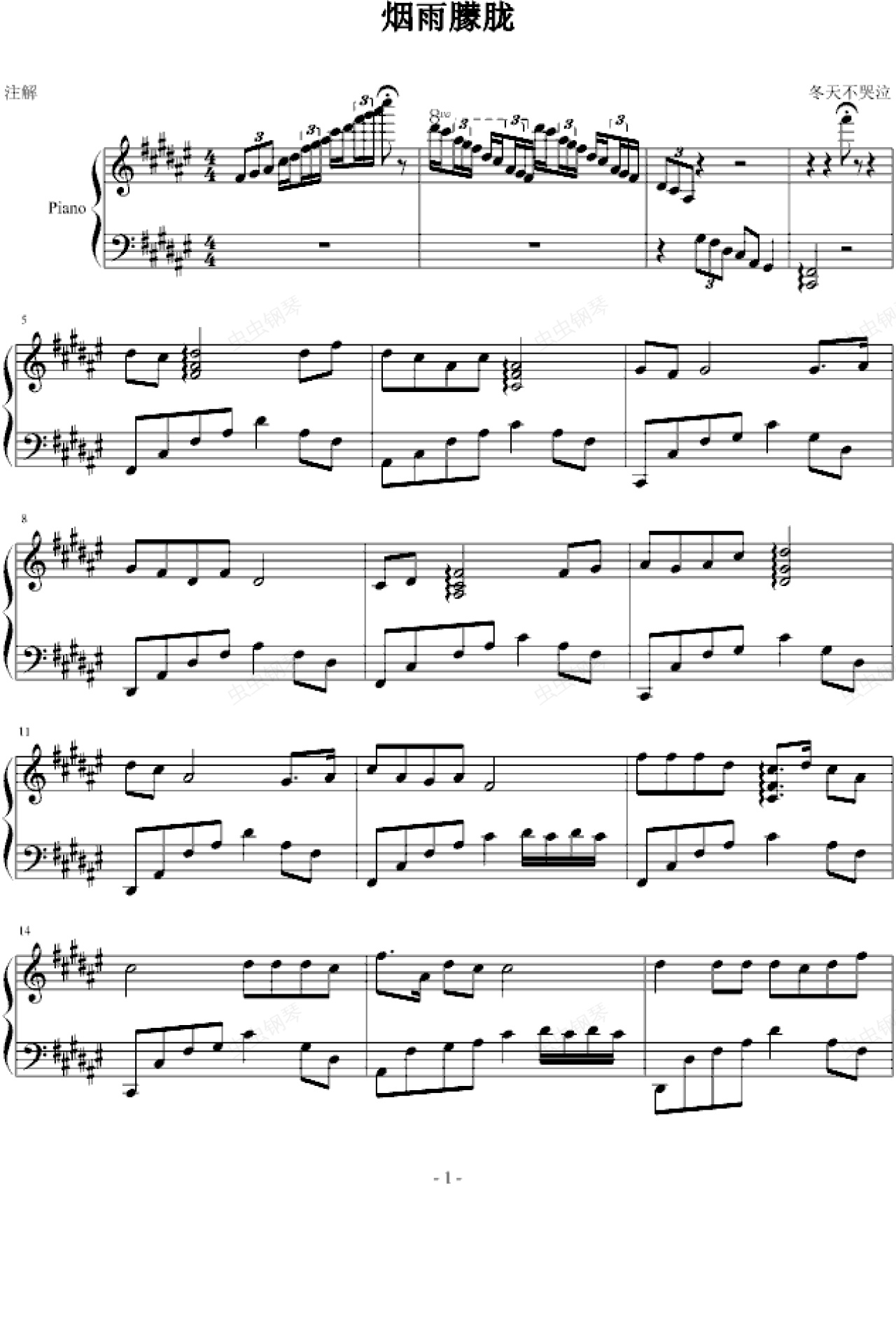 钢琴谱:烟雨朦胧
