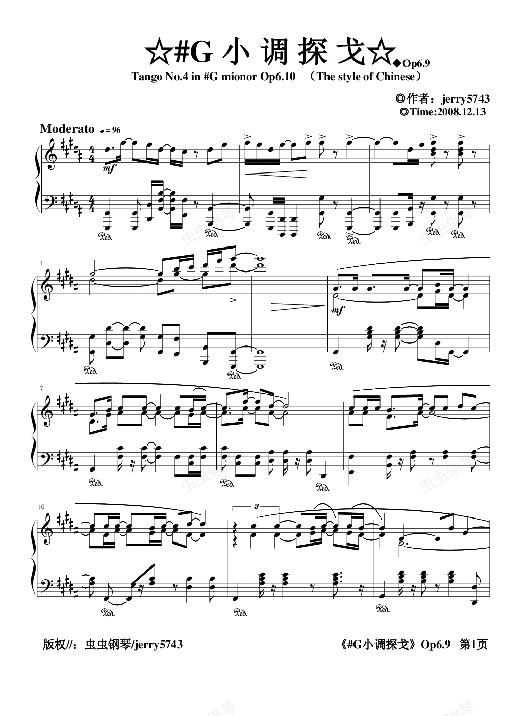 钢琴谱:#G大调探戈Op6.9(The style of Chinese)