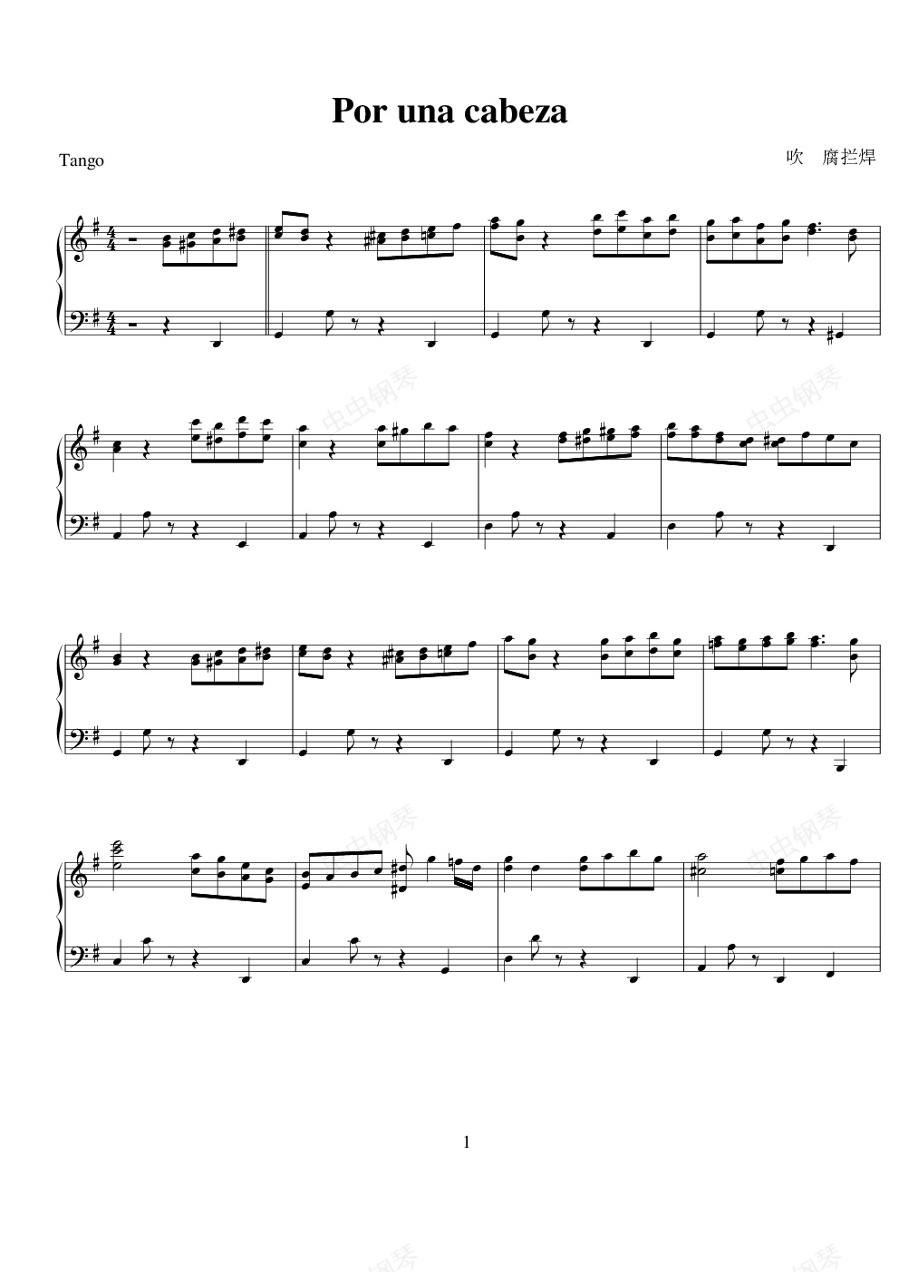 钢琴谱:POR UNA CABEZA