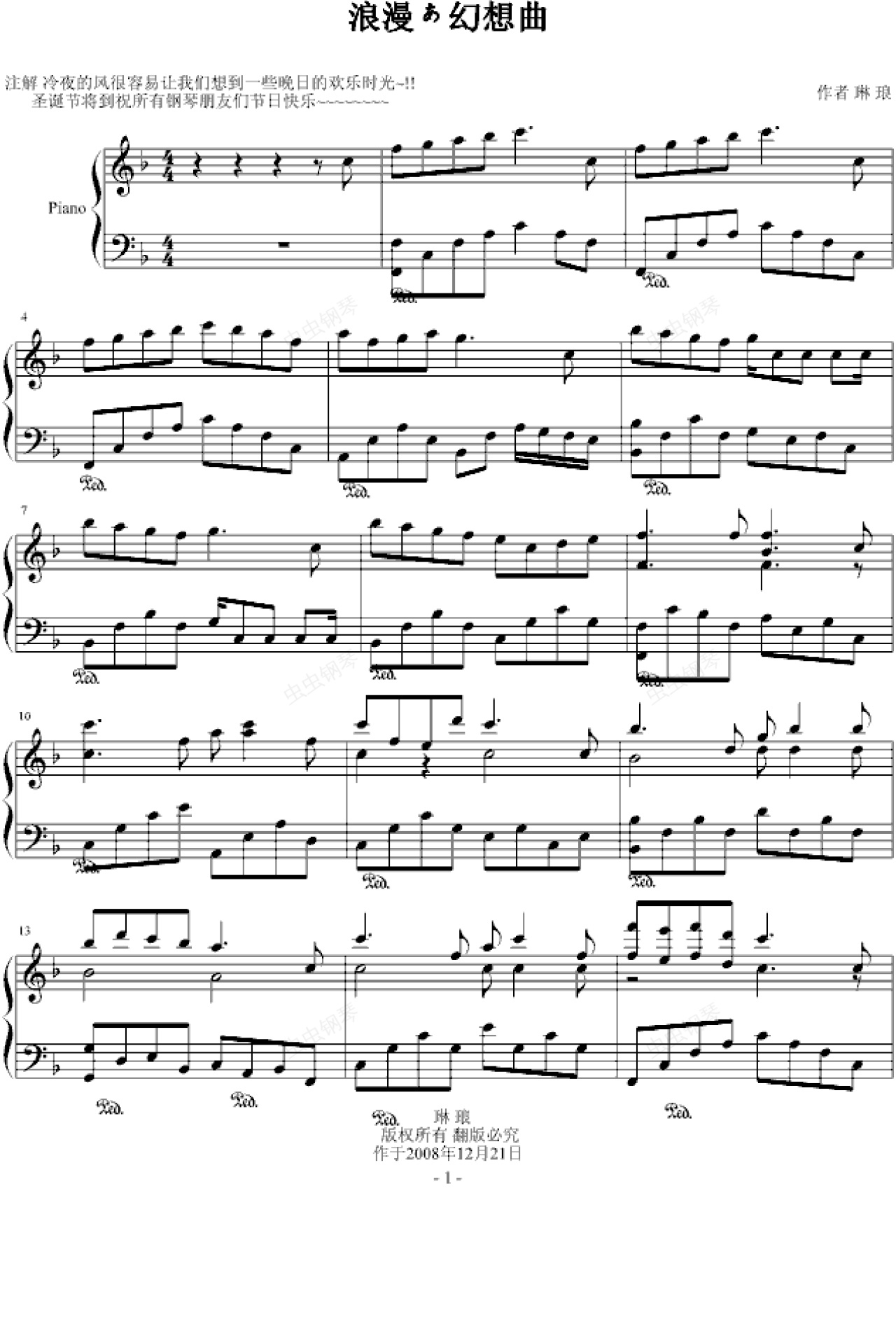 钢琴谱:浪漫ぁ幻想曲