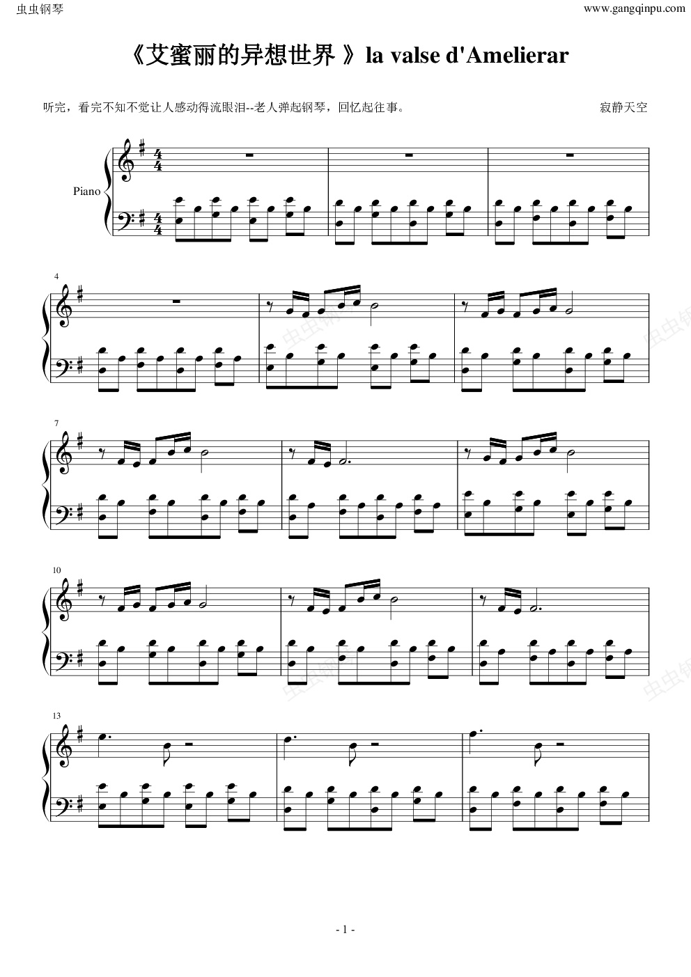 钢琴谱:《艾蜜丽的异想世界 》la valse d'Amelierar