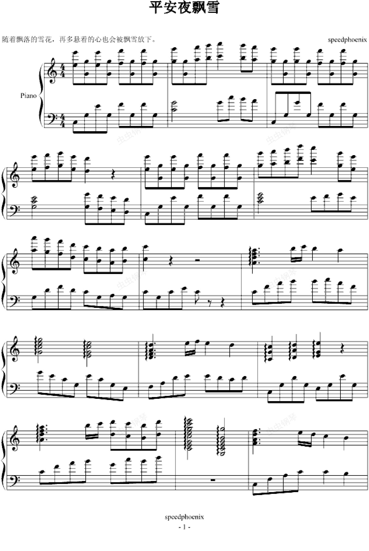 钢琴谱:平安夜飘雪