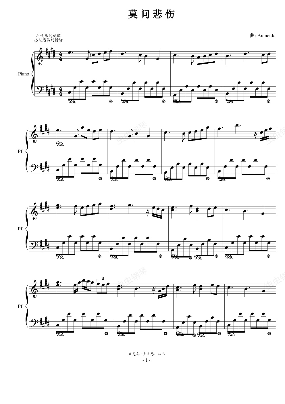 钢琴谱:莫问哀伤