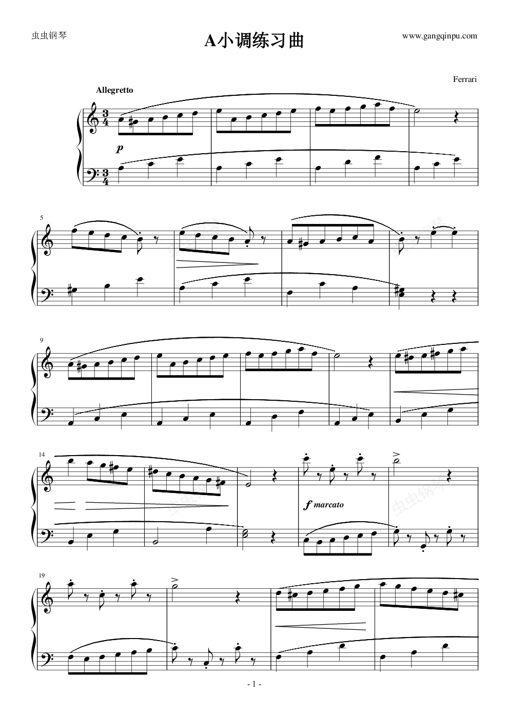 钢琴谱:A小调练习曲