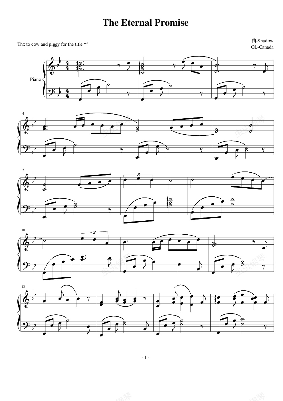 钢琴谱:The Eternal Promise