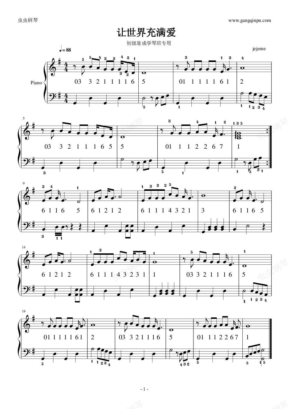 钢琴谱:让世界充满爱