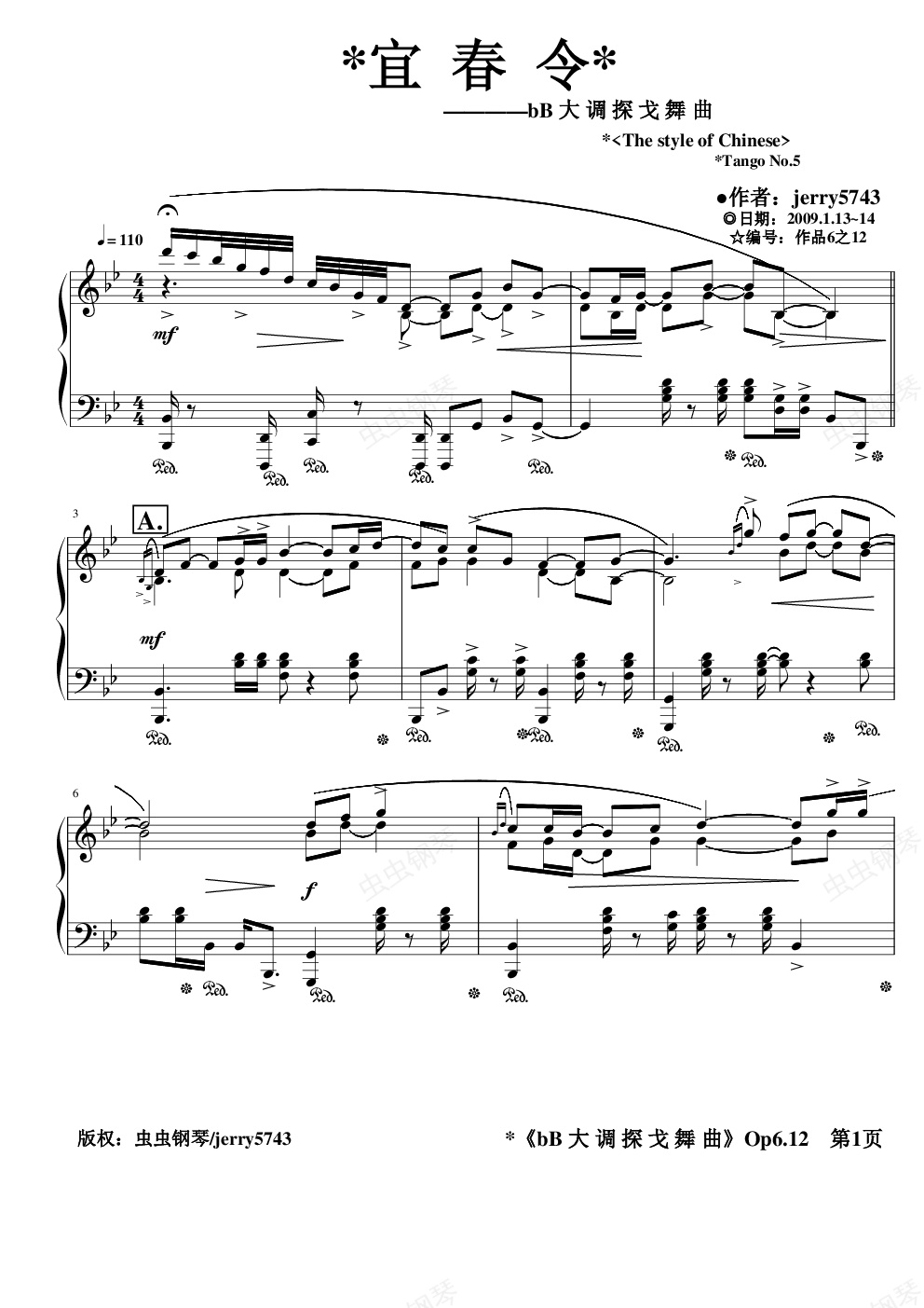 钢琴谱:宜春令 bB大调探戈舞曲Op6.12(中国风)