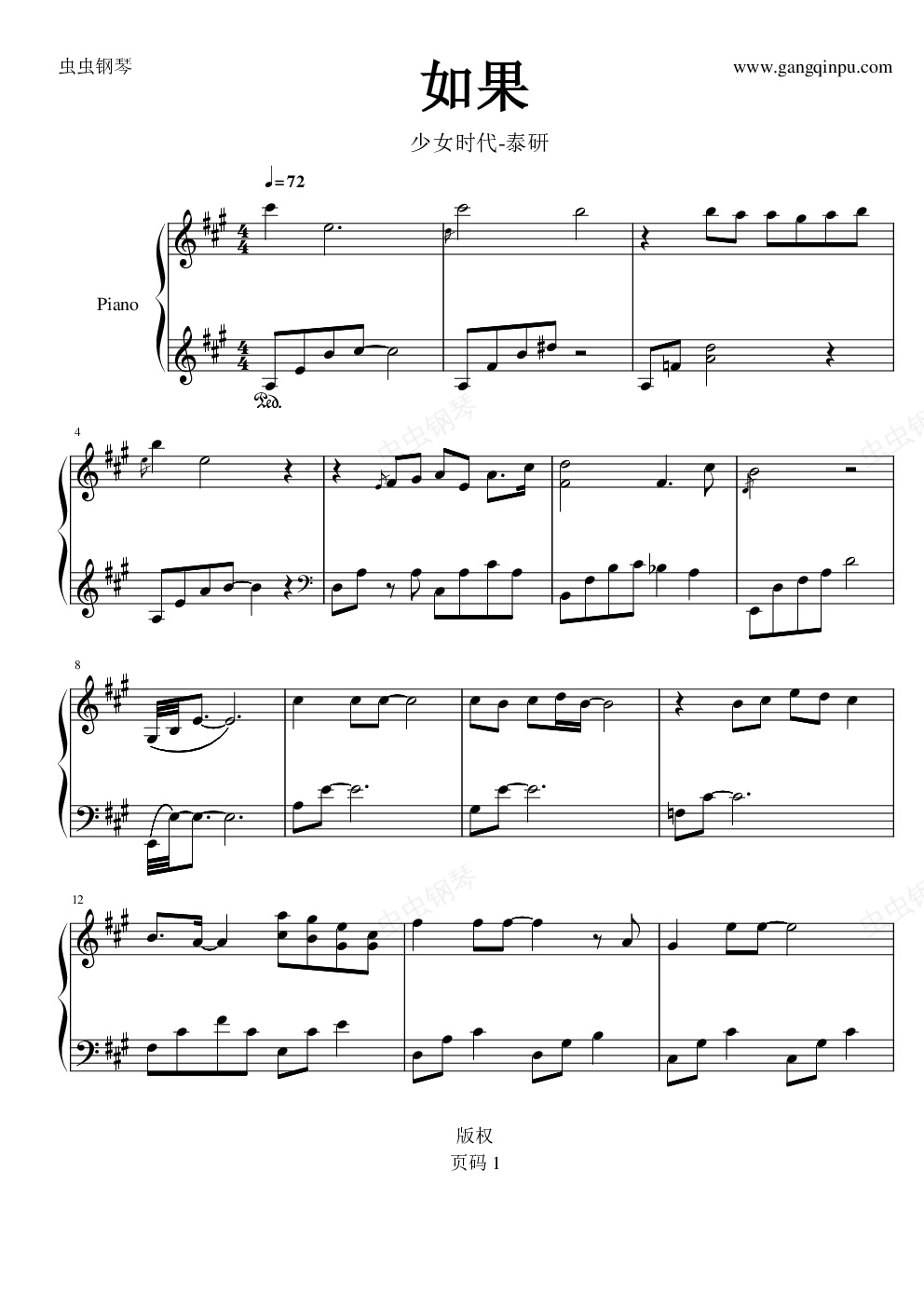 钢琴谱:如果-泰研