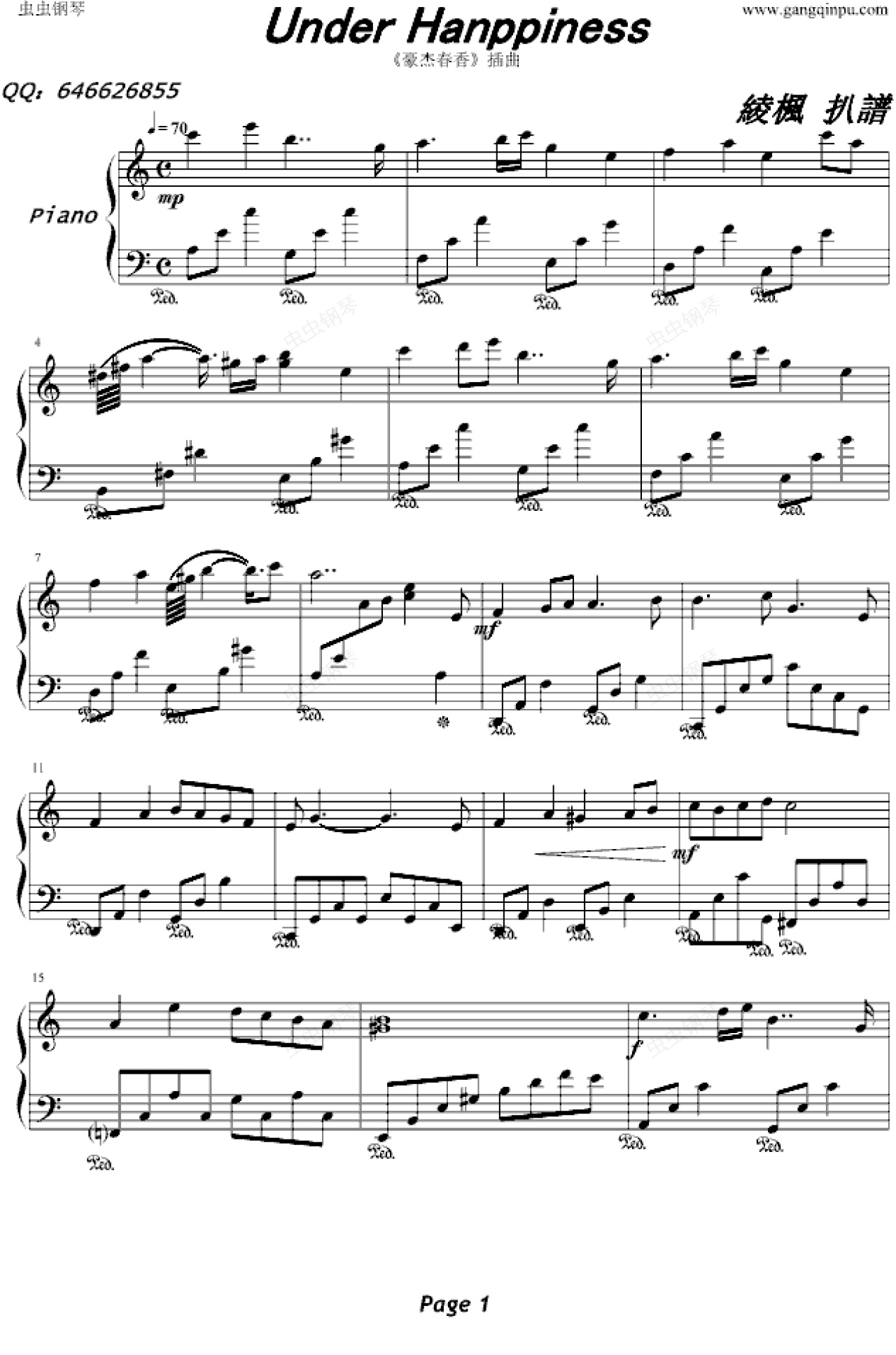 钢琴谱:Under Happiness 《豪杰春香》插曲