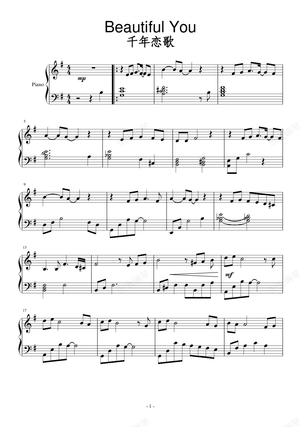 钢琴谱:千年恋歌(太王四神记主题曲)