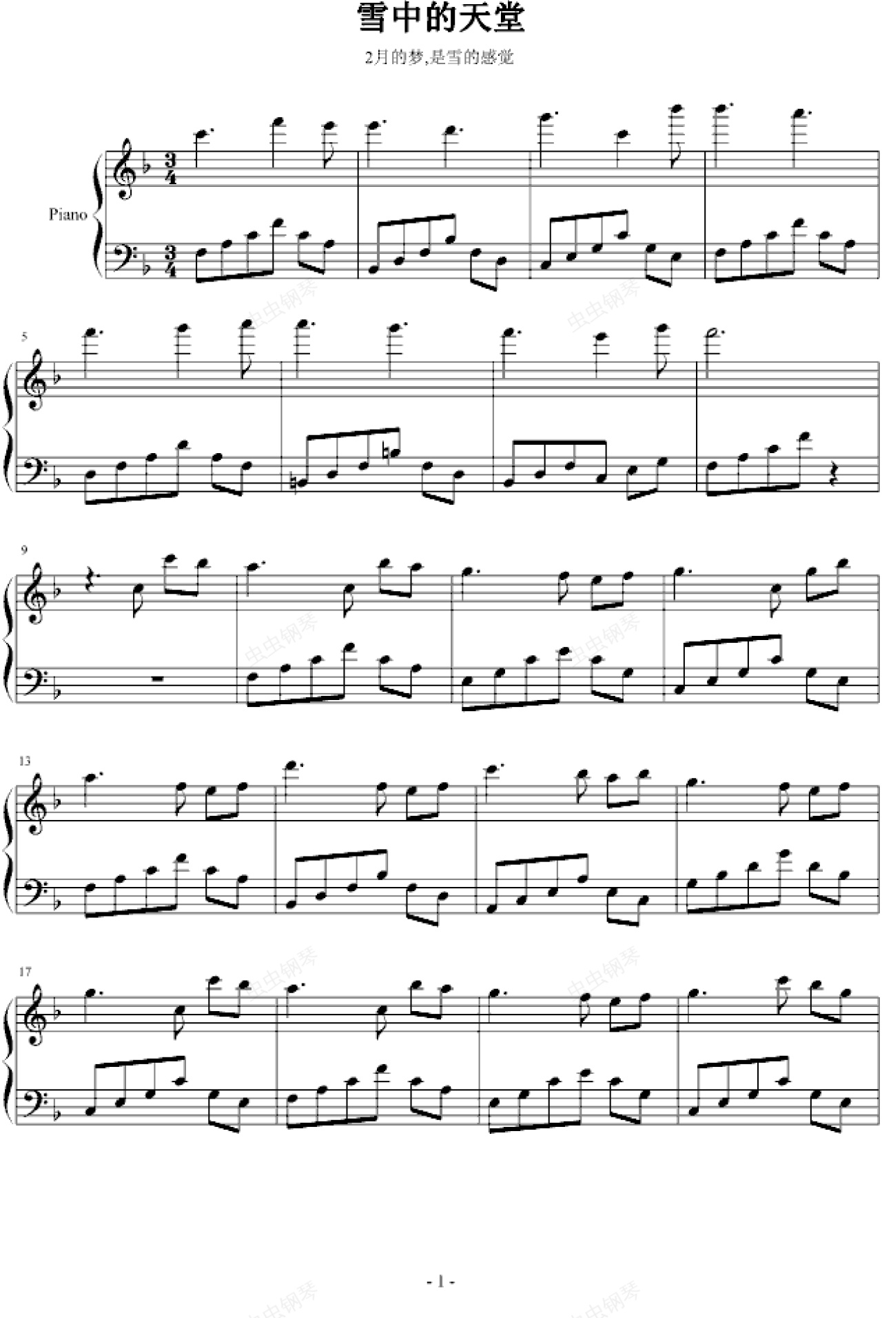钢琴谱:雪中的天堂