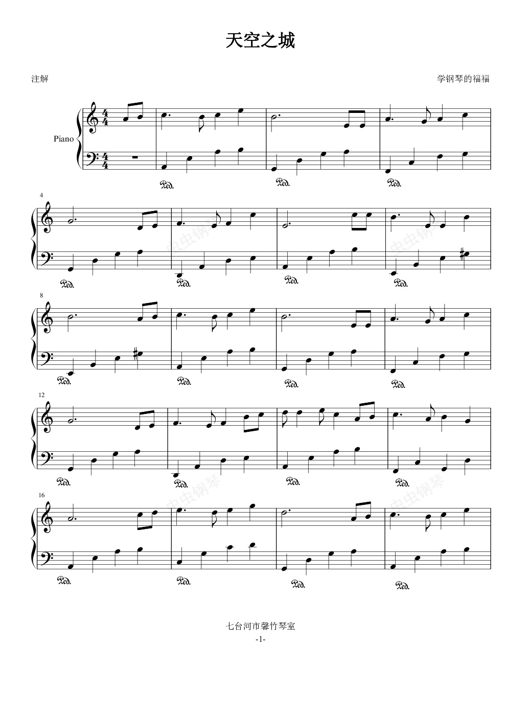 钢琴谱:天空之城-崔福福版