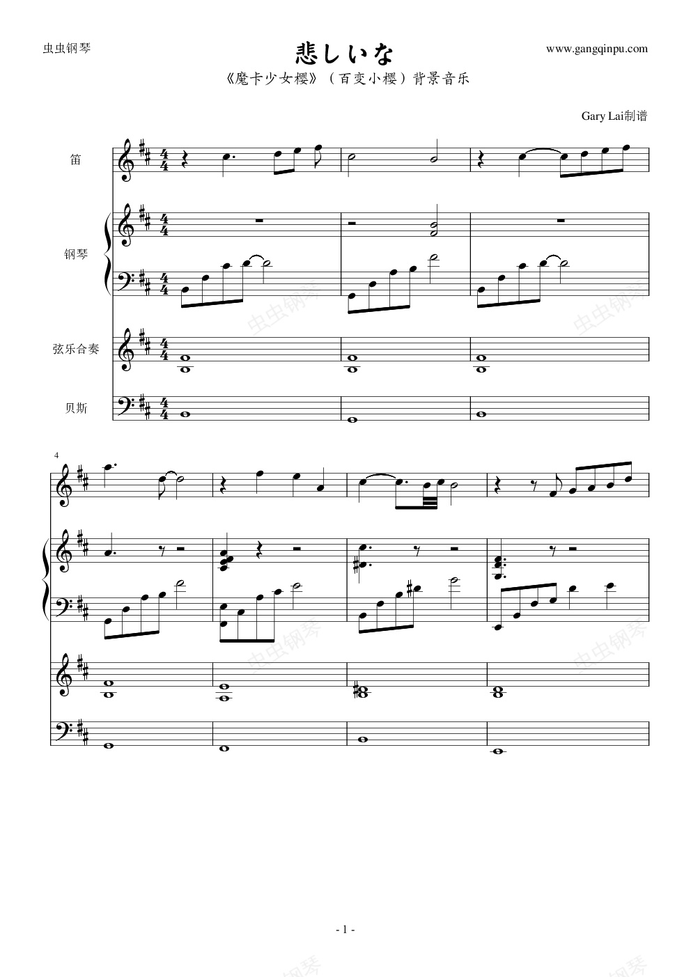 钢琴谱:魔卡少女樱(百变小樱)-悲しいな(总谱)