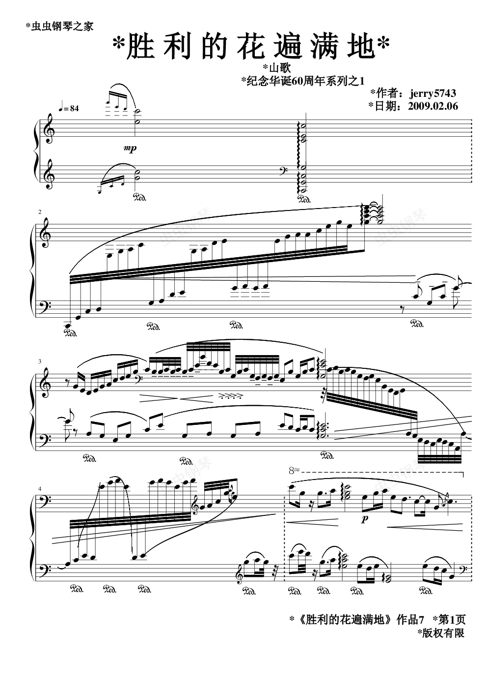 钢琴谱:胜利的花遍满地Op7.x (纪念华诞60周年)