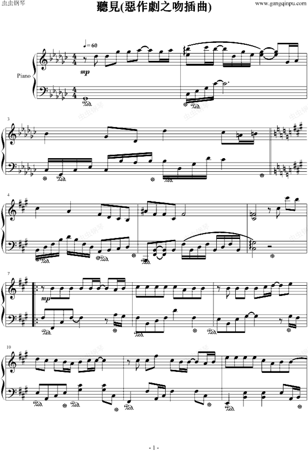 钢琴谱:聽見(惡作劇之吻插曲)