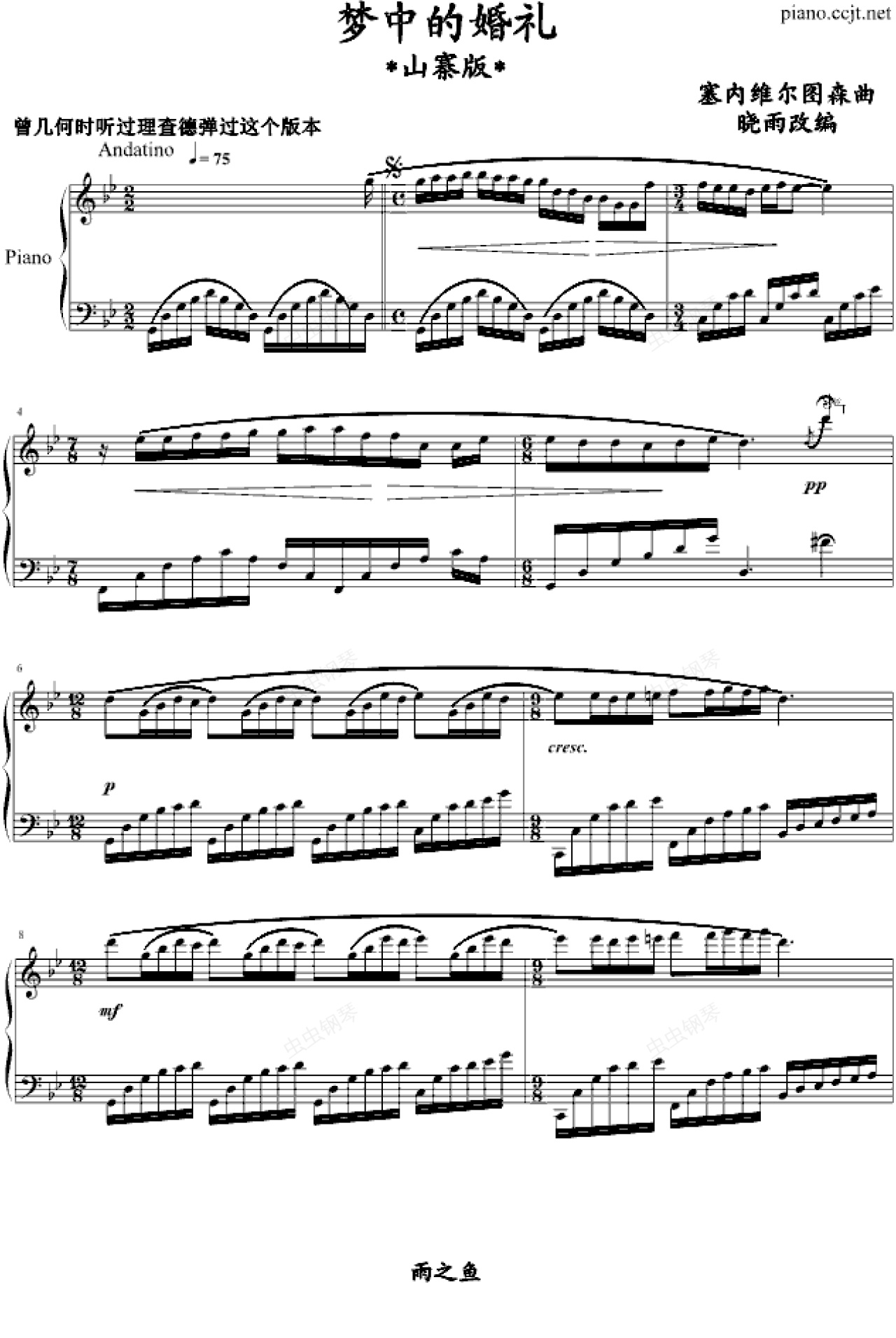 钢琴谱:梦中的婚理(山寨版)