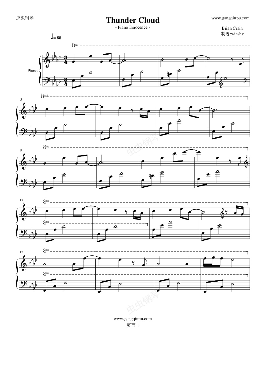 很喜欢很喜欢的一首钢琴曲...就把它做成谱子上传了..