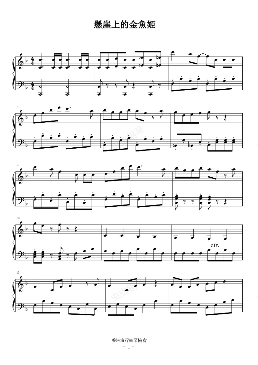 钢琴谱:悬崖上的金鱼公主/悬崖上的金鱼姬/崖上的波兒
