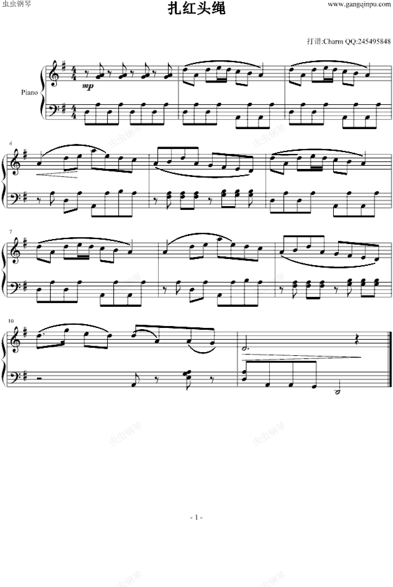 钢琴谱:扎红头绳