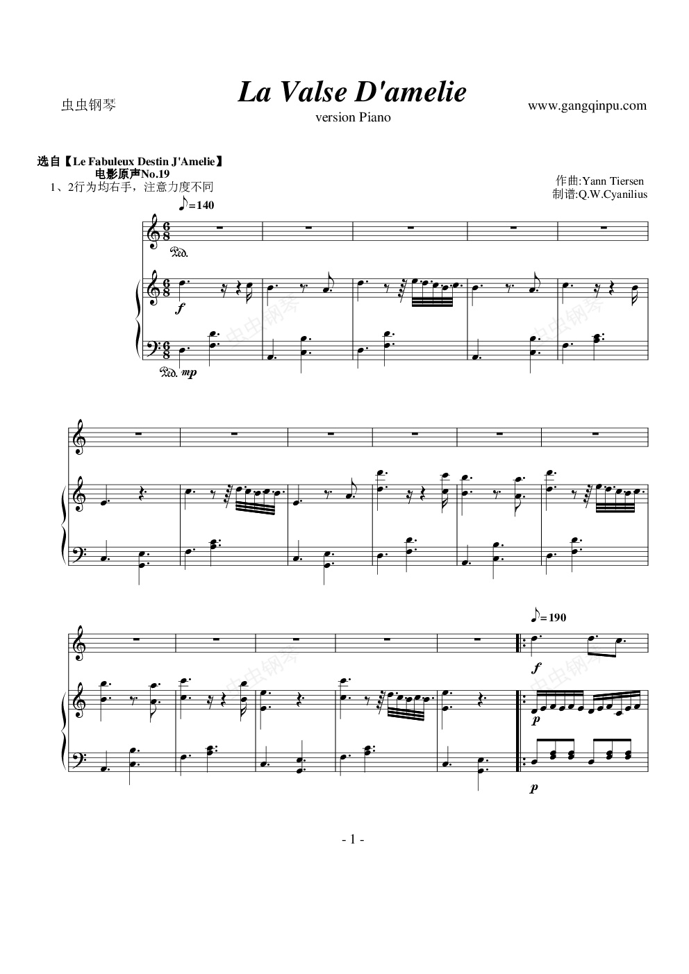 杨·提尔森-Yann Tiersen 版
