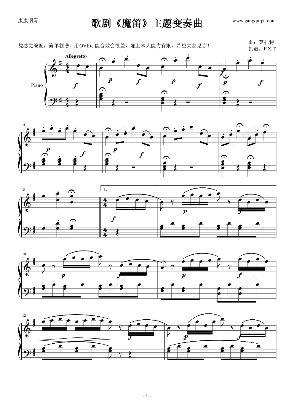 钢琴谱:歌剧《魔笛》主题变奏曲