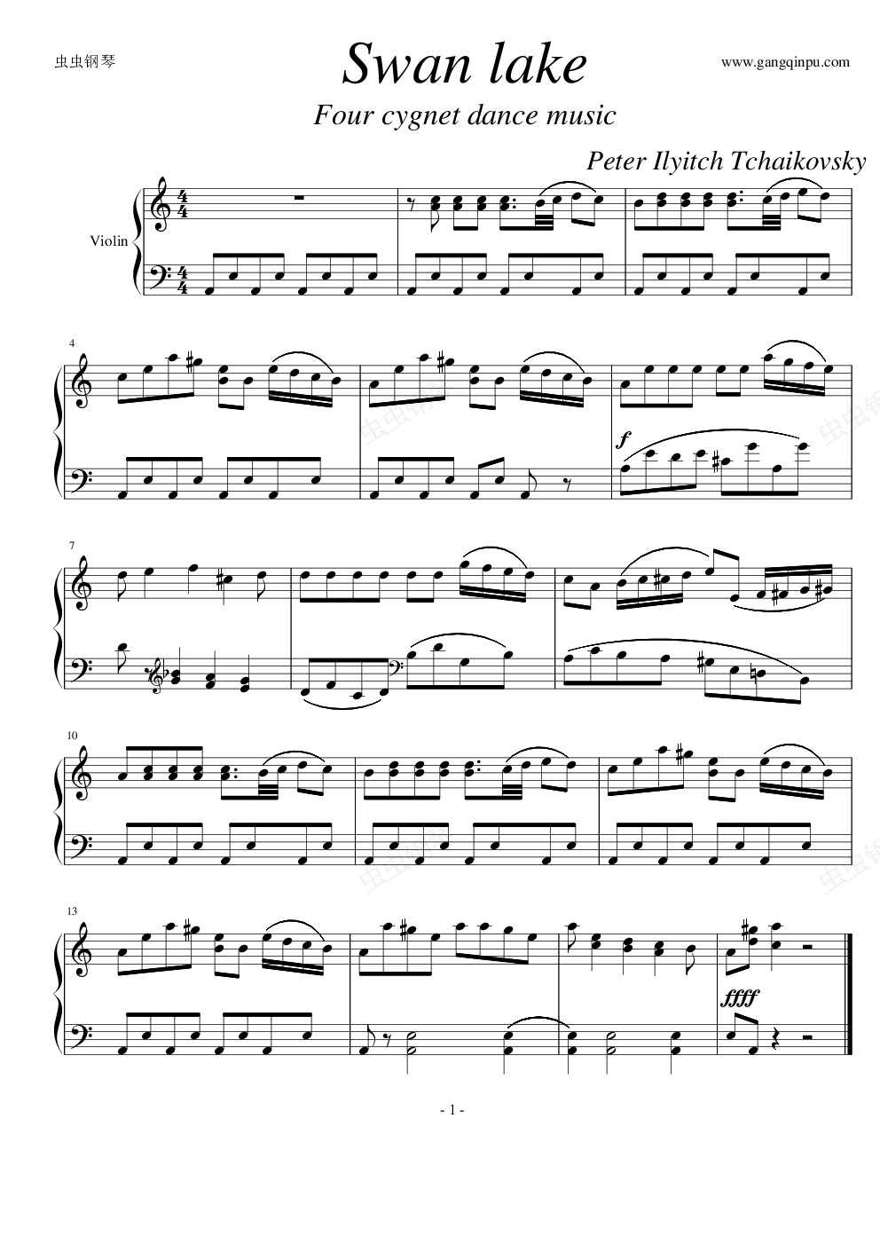 钢琴谱:天鹅湖 四小天鹅舞曲