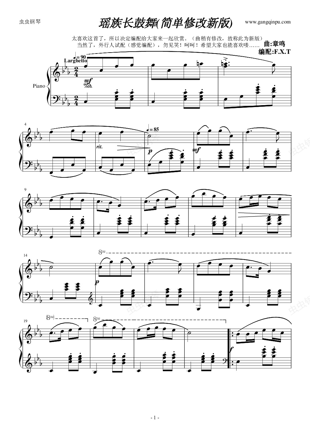 钢琴谱:瑶族长鼓舞(简单修改新版)