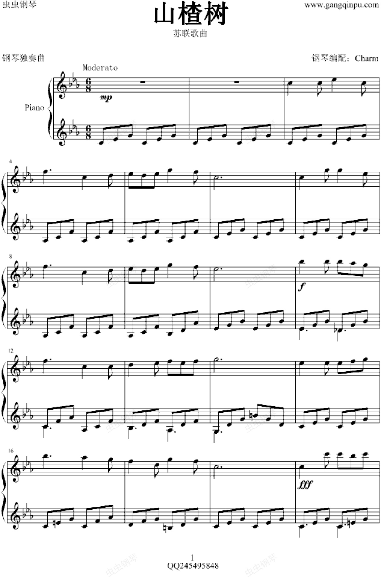 钢琴谱:山楂树 苏联歌曲