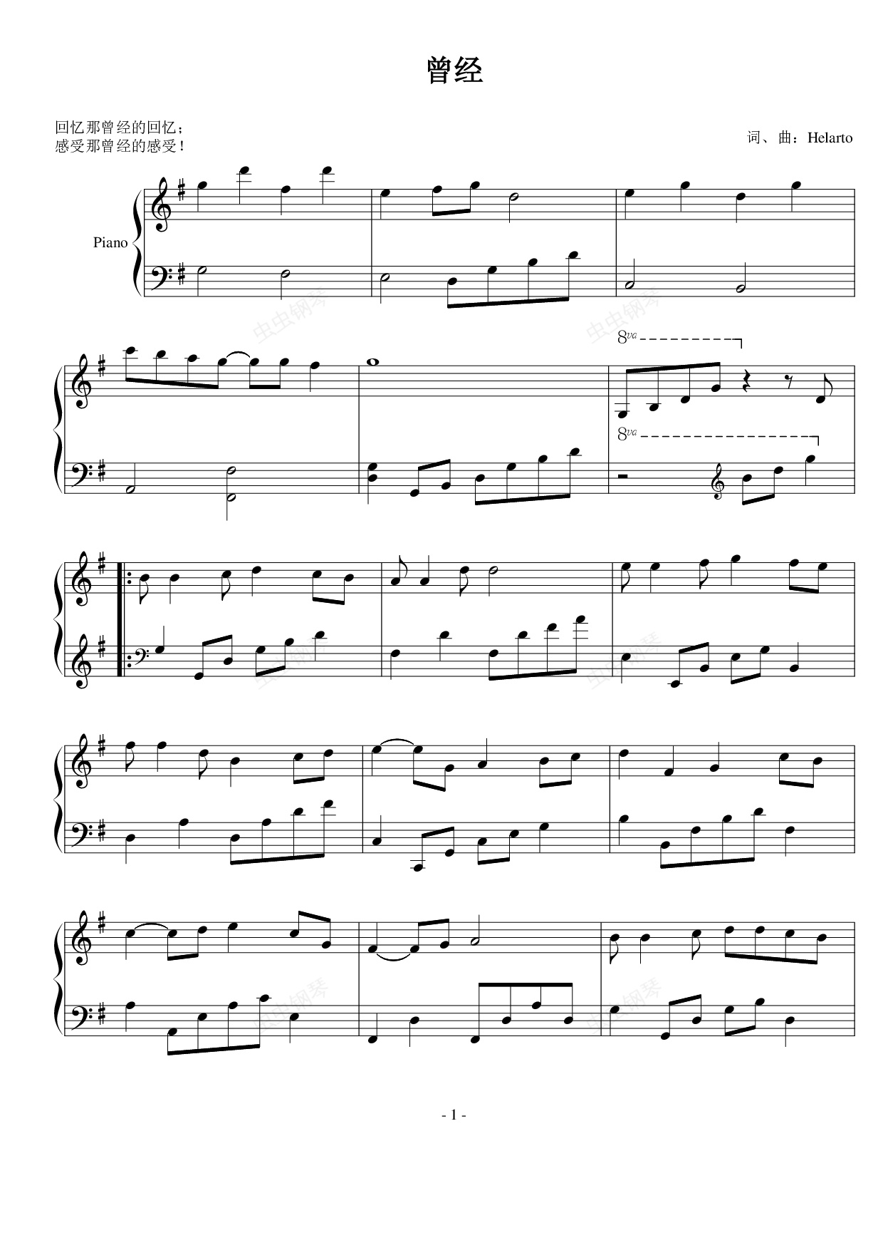 钢琴谱:曾经